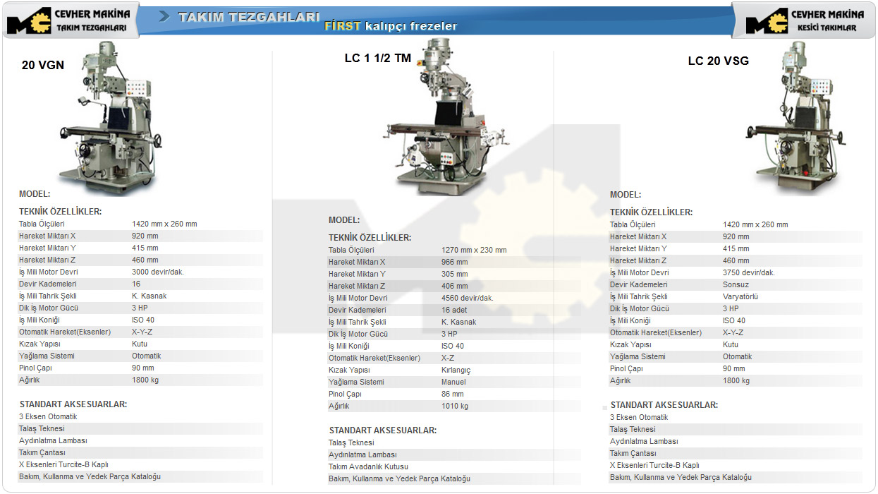 LC 20 VHS FİRST FREZE, LC 20 VHN FİRST FREZE,LC 205 VHD FİRST FREZE TEZGAHI.